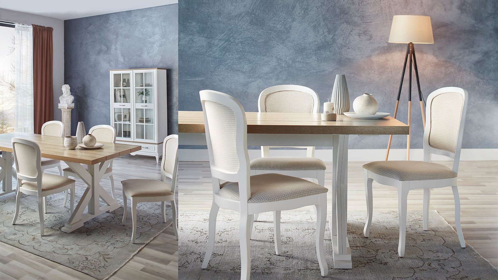 The elegance of the country style in your dining room ‘Angelic’, reflecting the ‘Country’ style with its peaceful natural tones and an unpretentious, elegant design, carries the traces of the past to the present. Your dining rooms will make a difference with their different table design and stylish chairs.