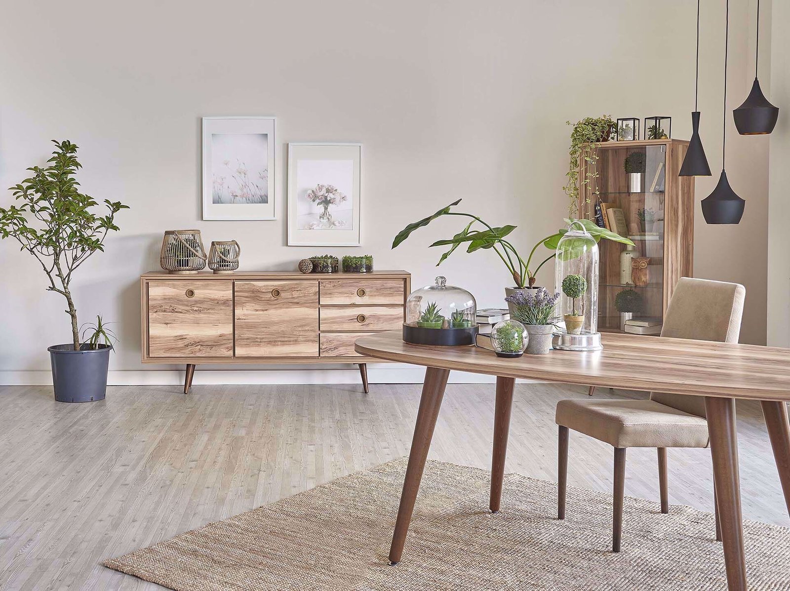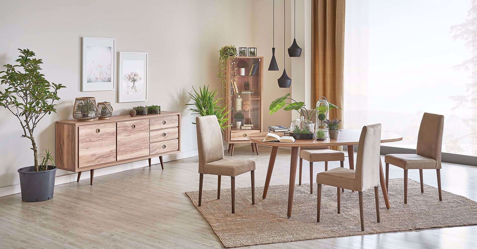 Calling those who want to add a different style to their home with their retro design lines, the QUEEN dining room; It is ready to take its place in your home with different surface alternatives, dark and walnut colors.